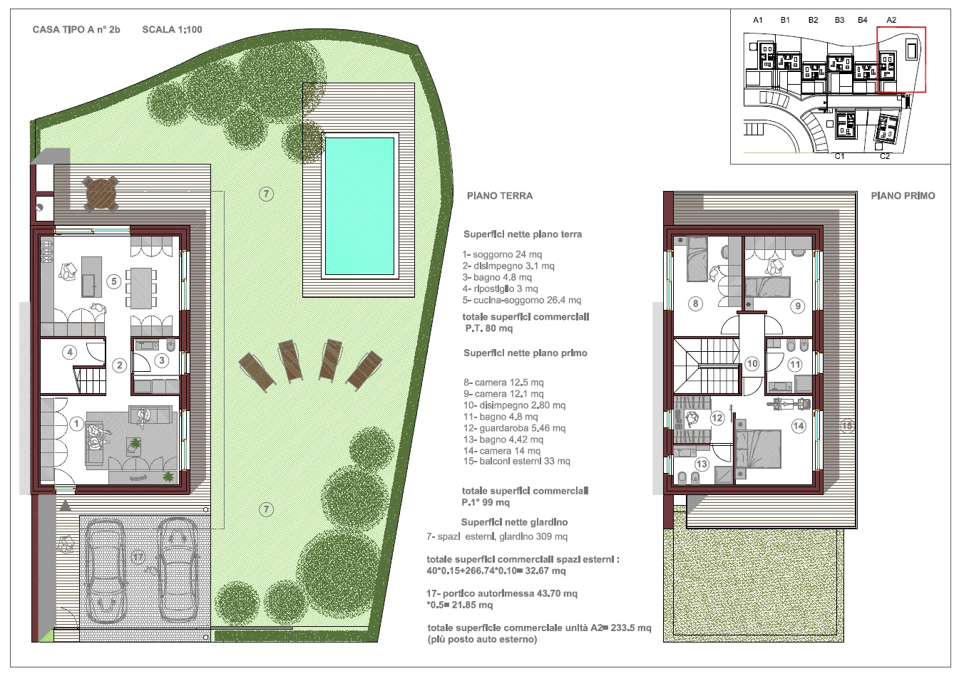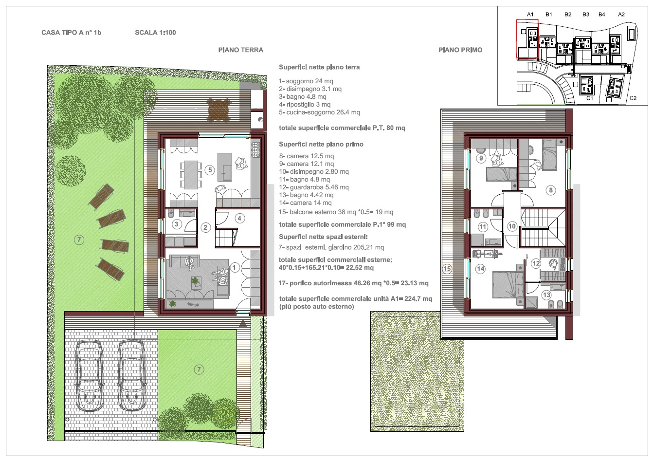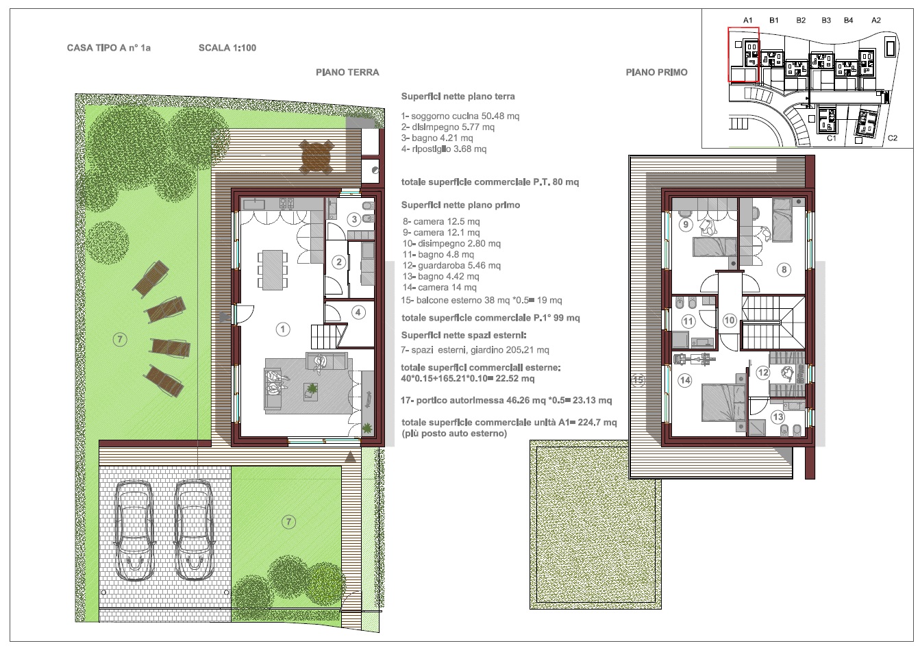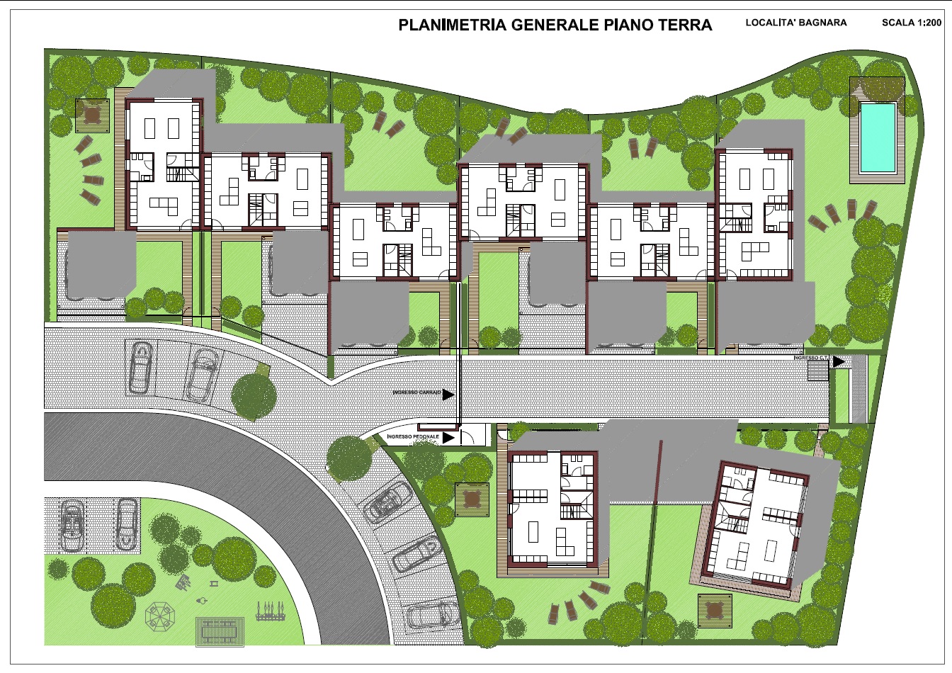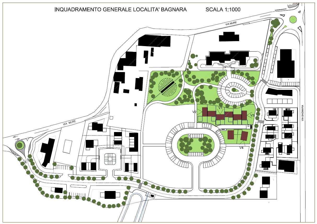 L'area di progetto riguarda un'ampia zona residenziale immersa nel verde, situata a Monteviale, in località Bagnara; il progetto prevede un residence con case a schiera, indipendenti, sviluppate ciascuna su due piani, piano terra e primo, con l'autorimessa posta al piano terra e con una notevole dsponibilità di verde privato. Il progetto pone una particolare attenzione al risparmio energetico, al fine della riduzione dei consumi, come alla privacy degli spazi ed alla massima utilizzabilità dei giardini privati, cui le zone interne delle unità fanno diretto riferimento con aree previste per mangiare all’aperto e per il gioco.