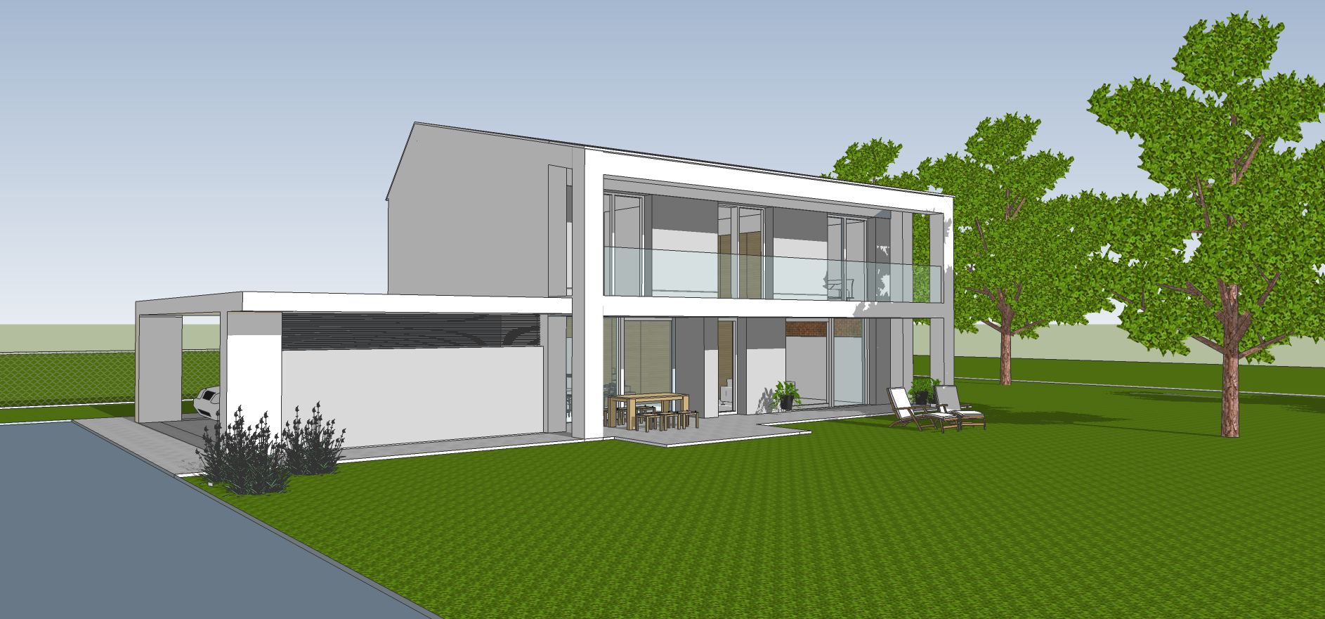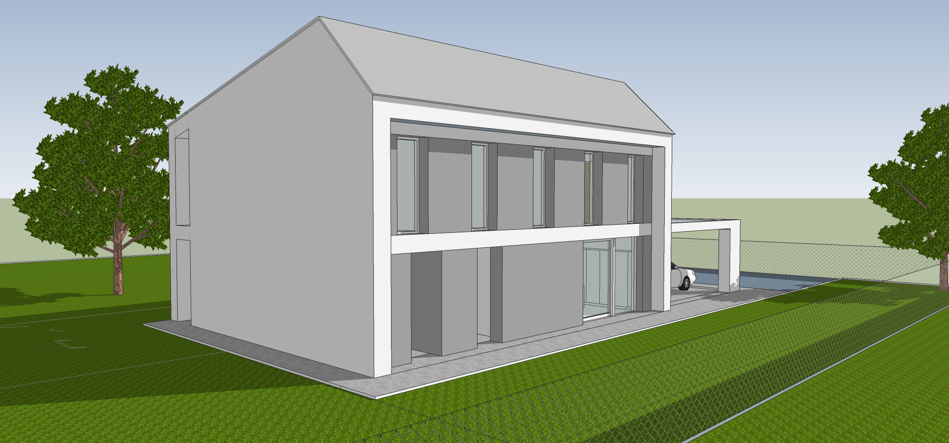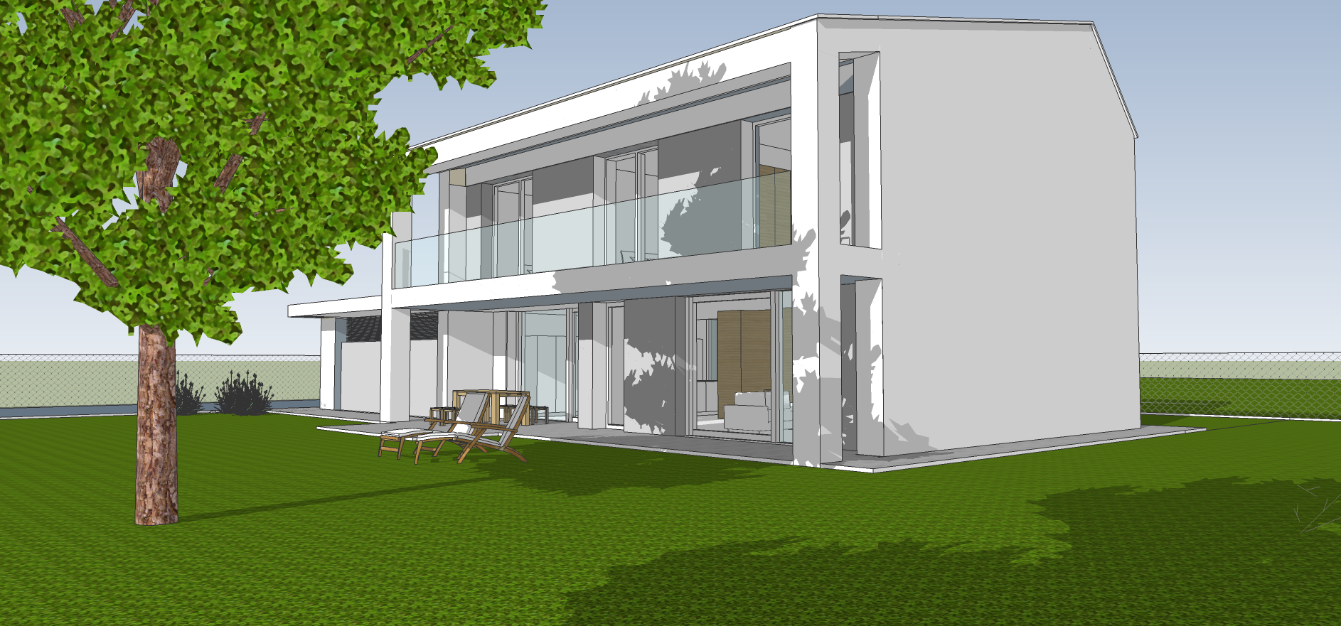 Casa M.A. è una proposta di progetto di un' abitazione unifamiliare che trova spazio all'interno di un lotto già edificato recentemente, occupandone l'area più a ovest, e lasciando che l'ampio giardino di proprietà trovi spazio e comunicazione con quello adiacente, valorizzando pertanto le residenze intorno all’aria verde. Forme semplici e pulite con ampie aperture che permettono agli spazi interni di interagire continuamente con l'esterno, sono i caratteri principali del progetto, che con le vetrate e con il portico esterno cercano di prolungare naturalmente verso il giardino gli spazi di relazione.