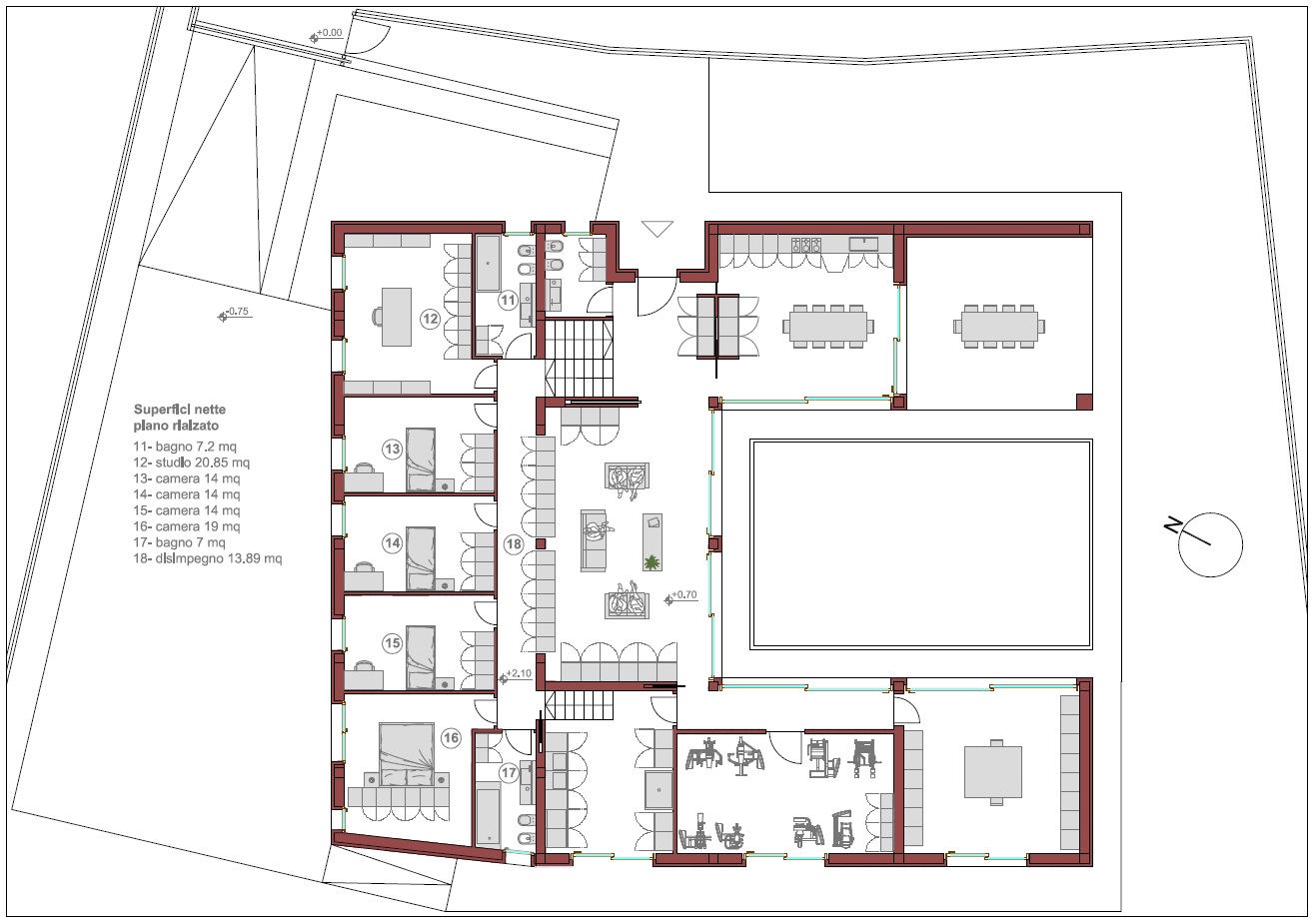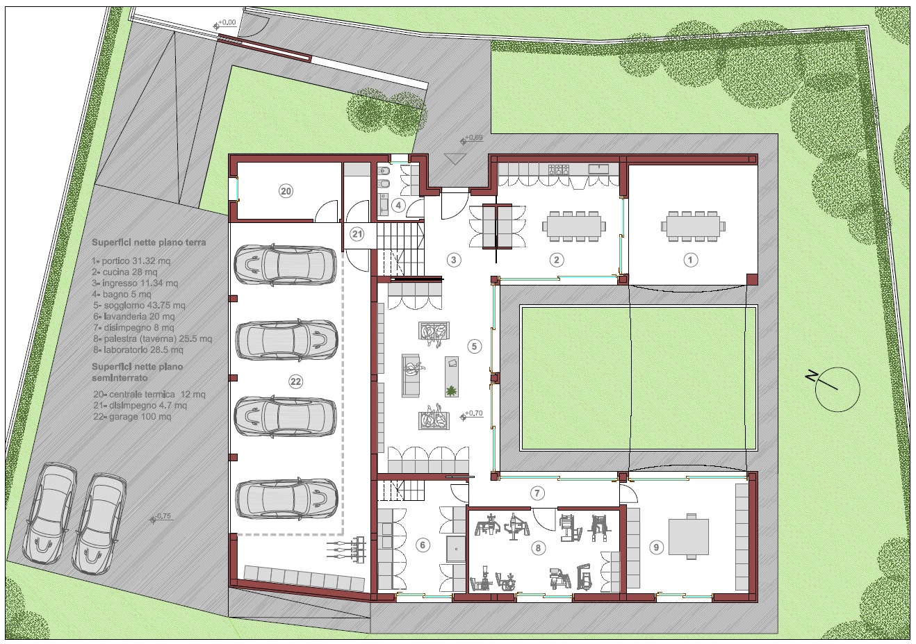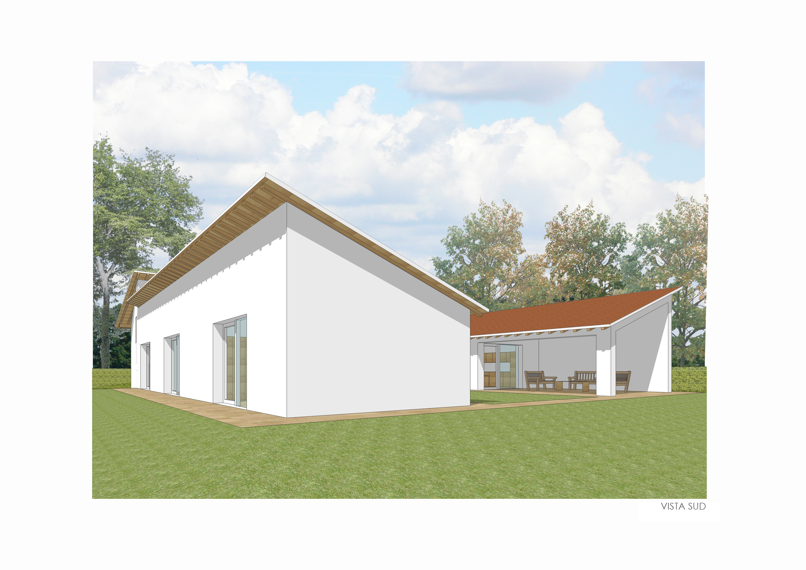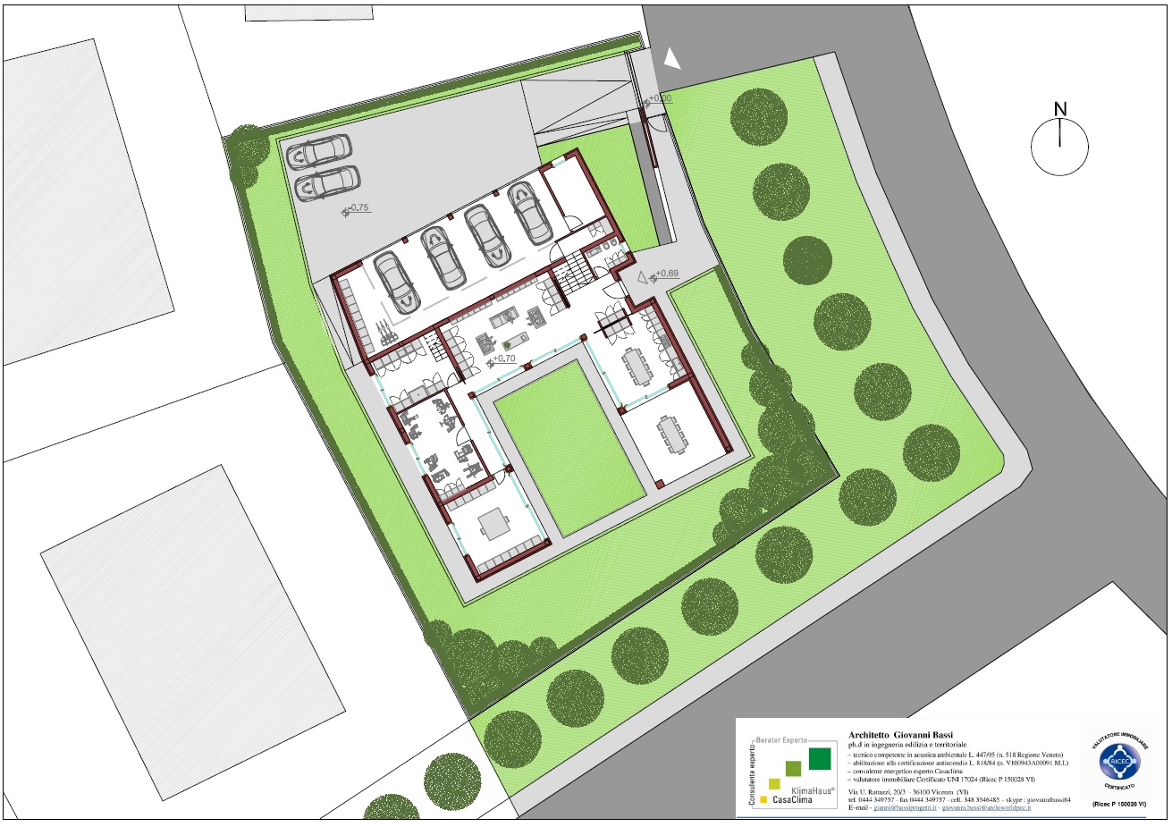 Casa unifamiliare sita a Camisano, Vicenza. Il progetto nasce per dare risposta alle specifiche richieste della committenza desiderosa di avere ampi spazi interni ed esterni, unitamente ad una privacy molto attenta e quindi ad una casa protetta dal contesto e dalla vista esterna, così da difendere la propria intimità. L'impianto tipologico vuole ispirarsi alla DOMUS romana che si sviluppava intorno all'atrium ovvero alla "corte" interna alla costruzione, definita e chiusa dagli stessi ambienti di vita, che, in questo attuale contesto, si caratterizza per la presenza di uno spazio centrale verde molto riservato e definito dalla e nella casa stessa. La casa in periodo estivo può essere vissuta con continuità nel suo rapporto interno esterno, grazie alla presenza di coperture ombreggianti avvolgibili.