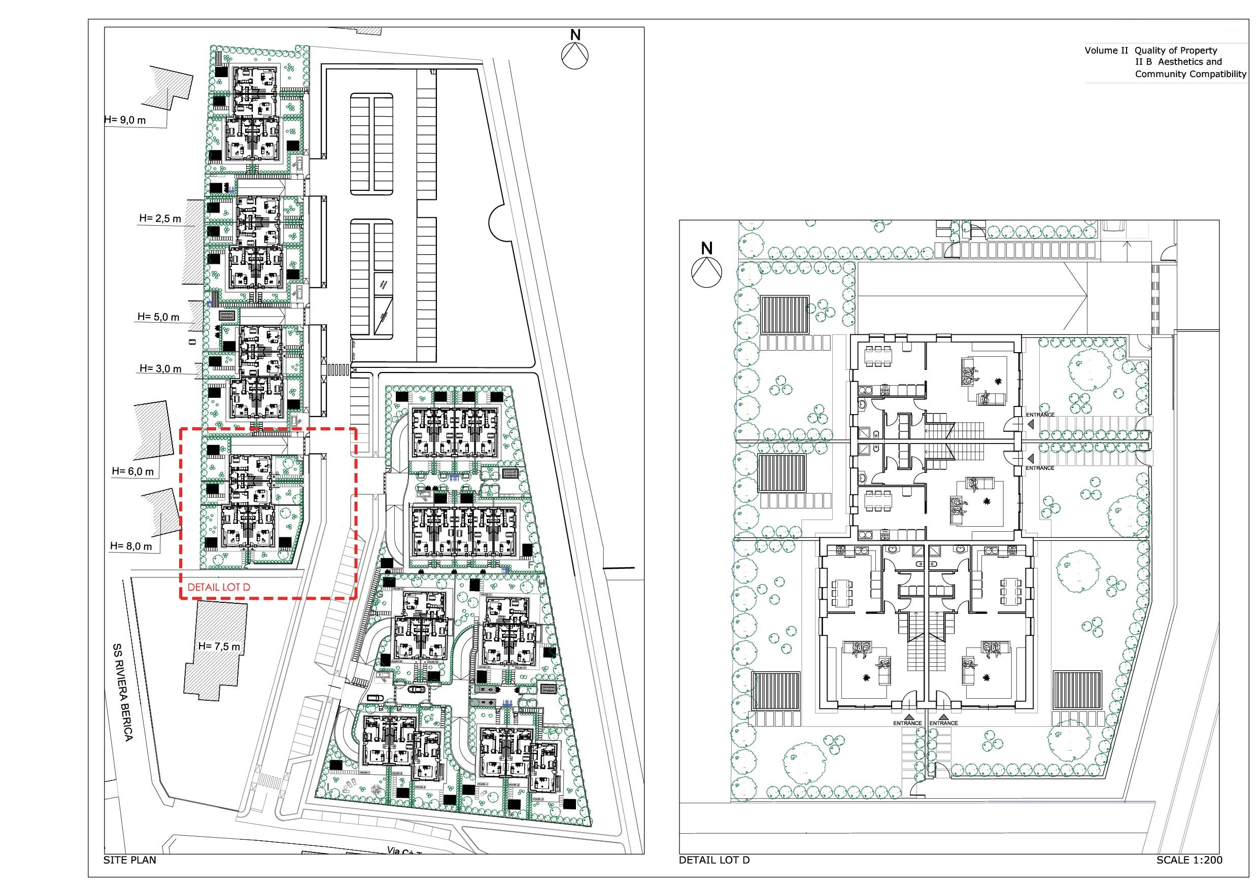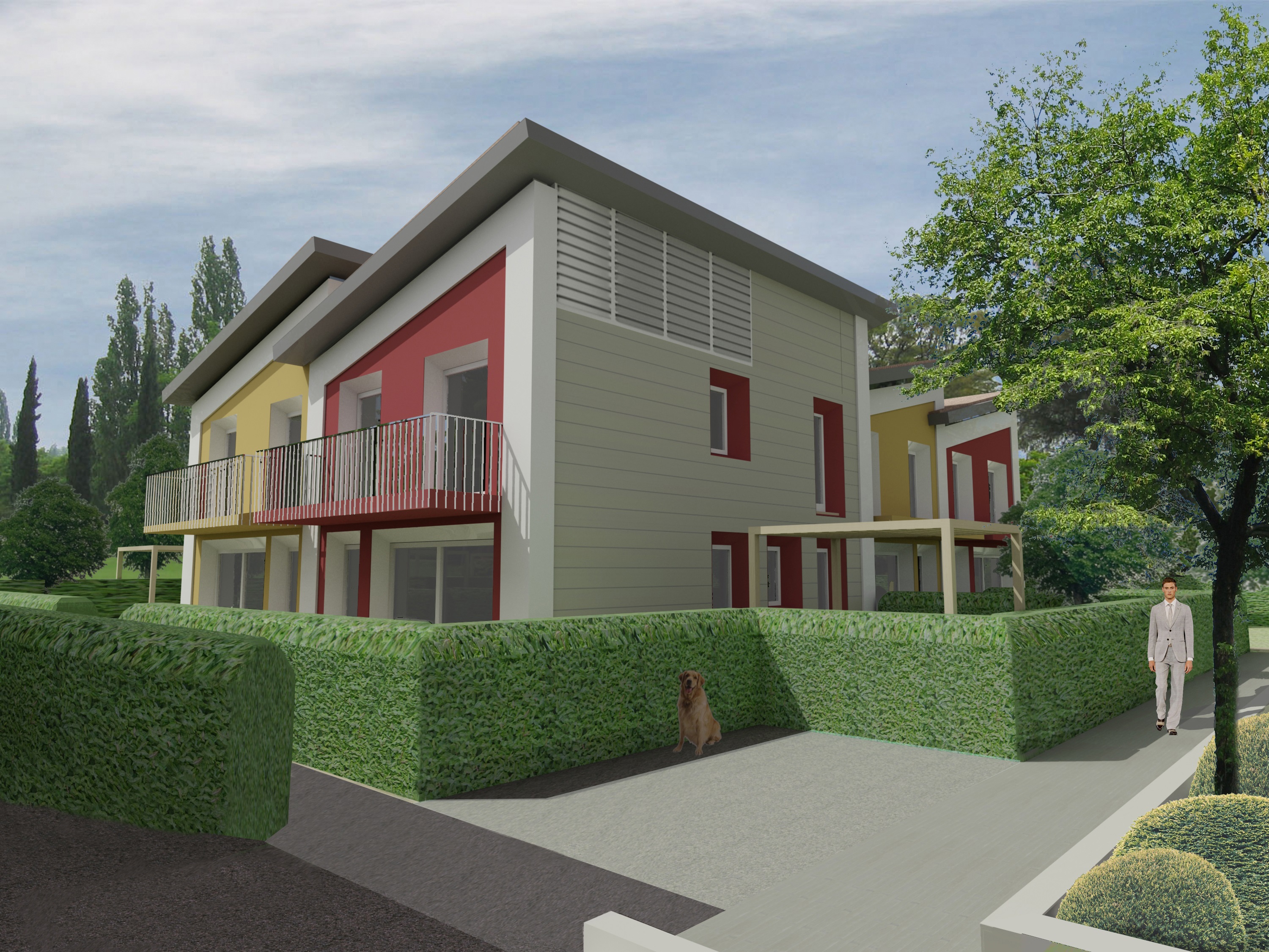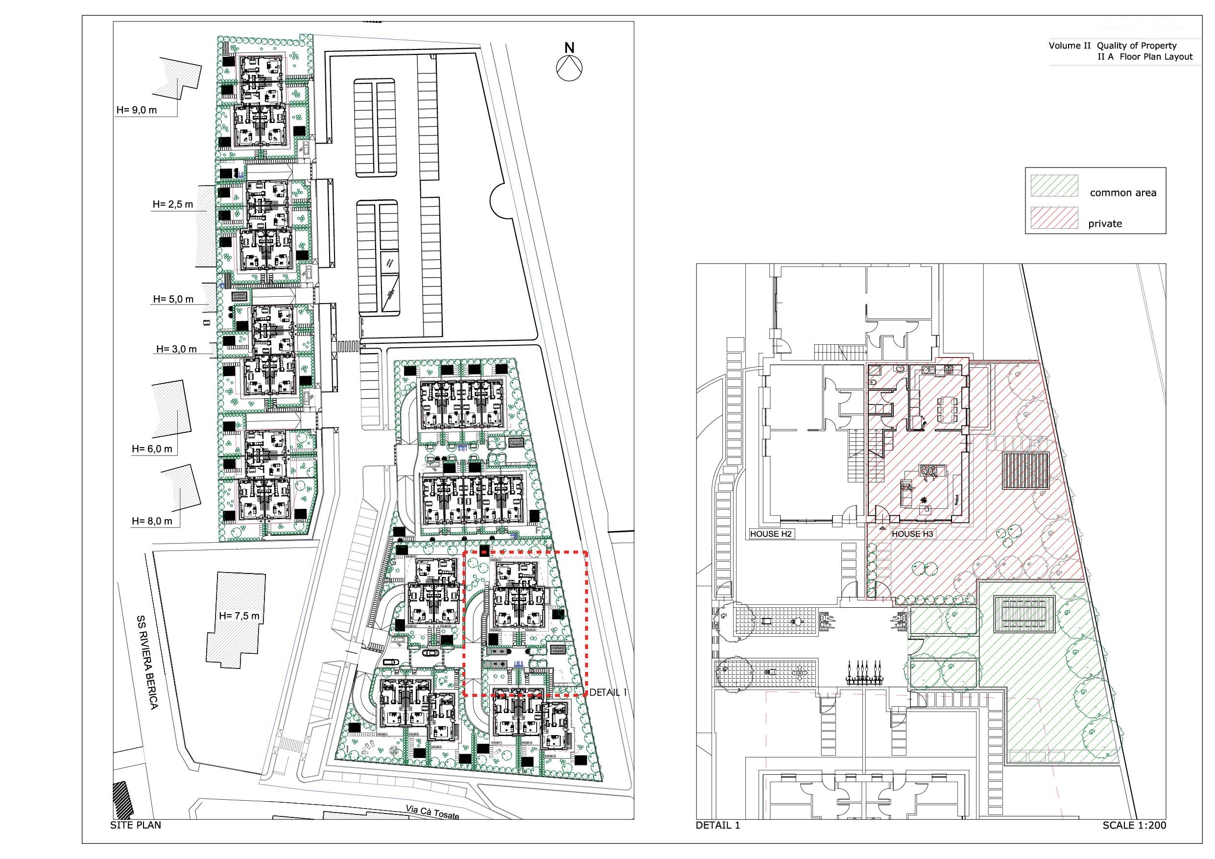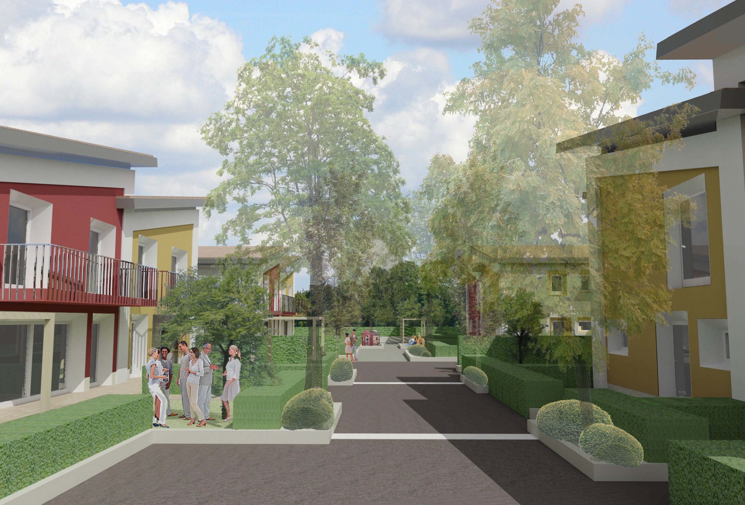Progetto preliminare di concorso per area PAC 1 a Campedello, Vicenza. Complesso residenziale diviso in comparti che si distingue per le aree verdi interne ai vari nuclei residenziali, strutturati con zone comuni per il relax e con servizi collettivi per cucinare e mangiare insieme e per vivere attivamente gli spazi comuni.