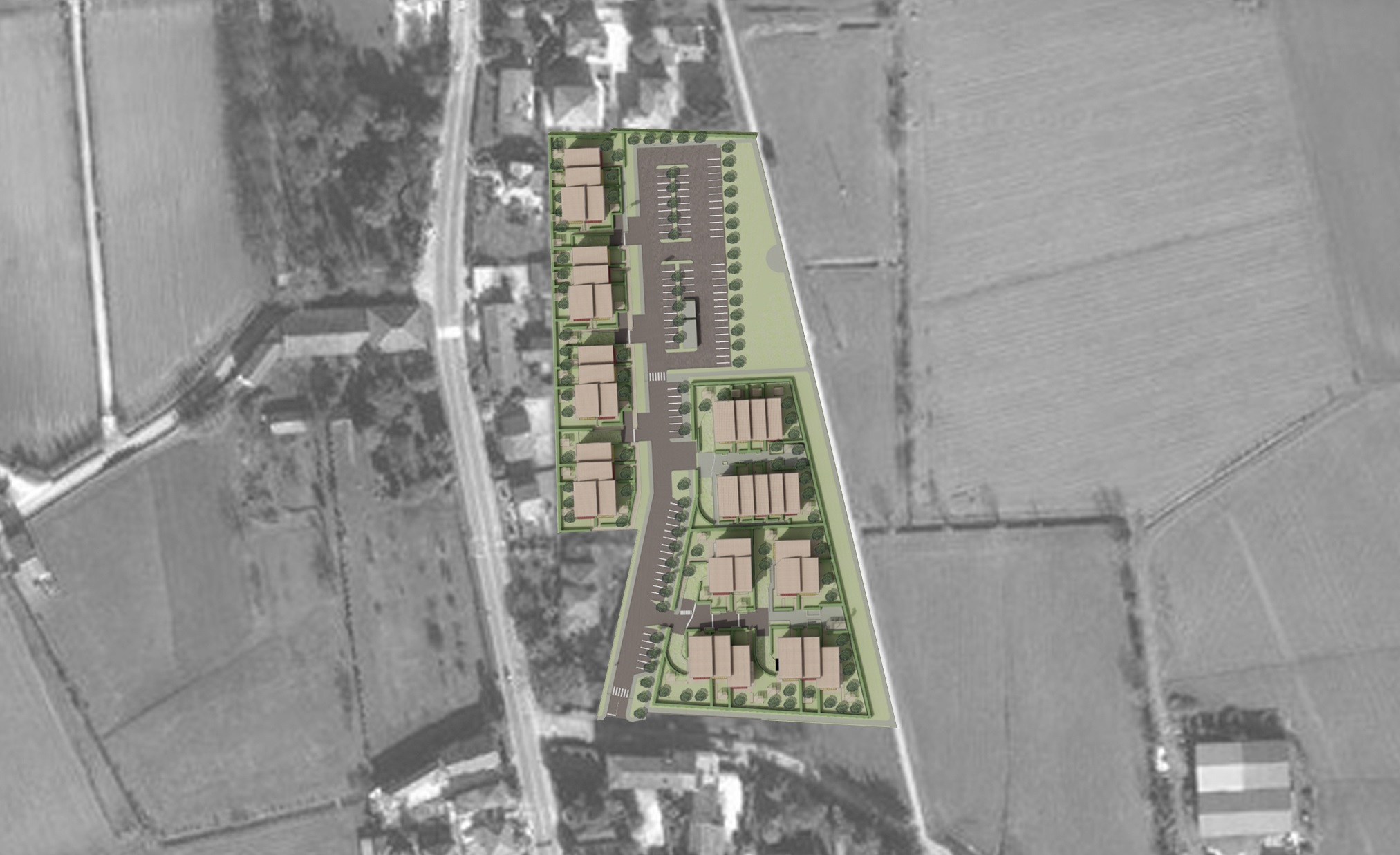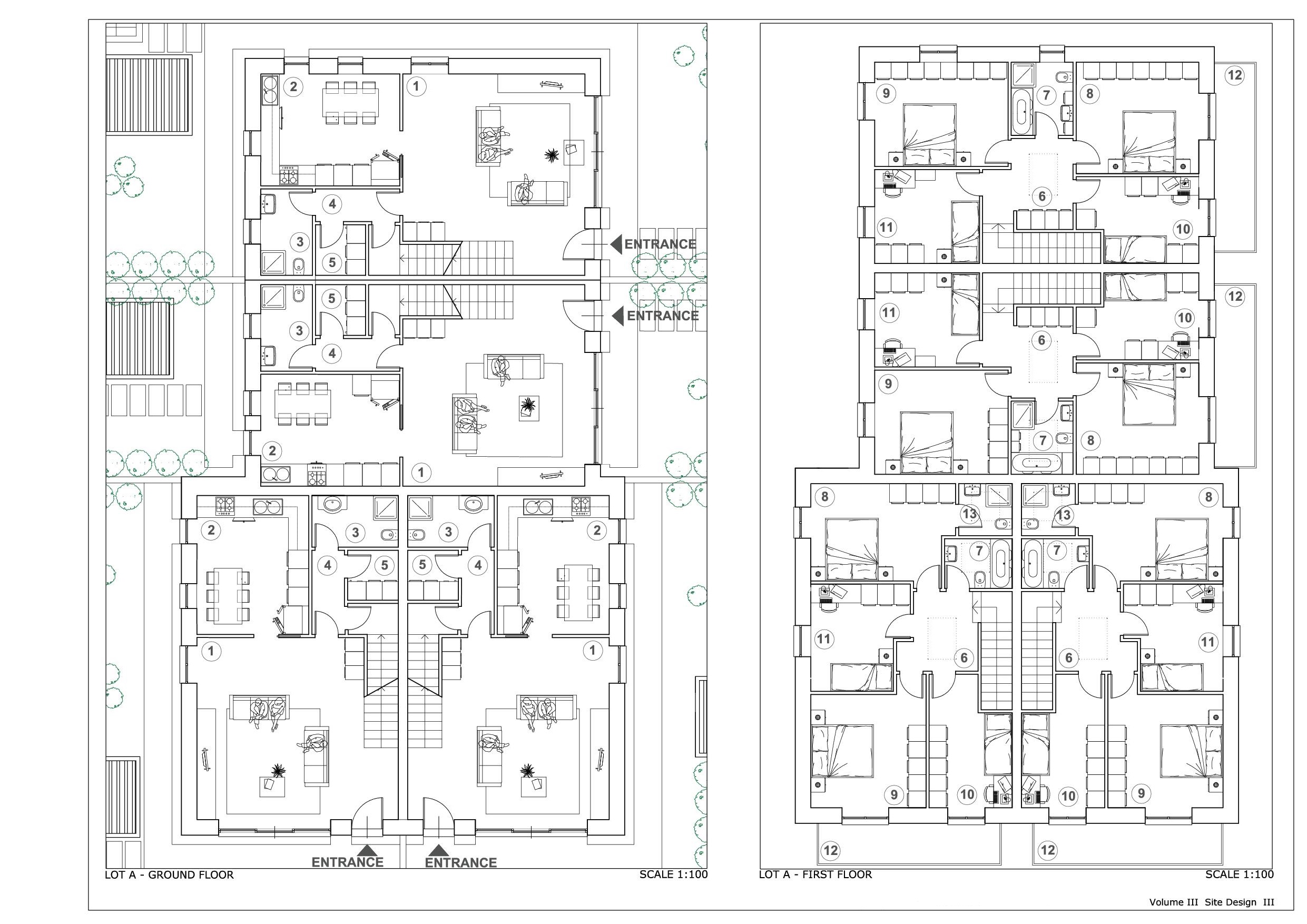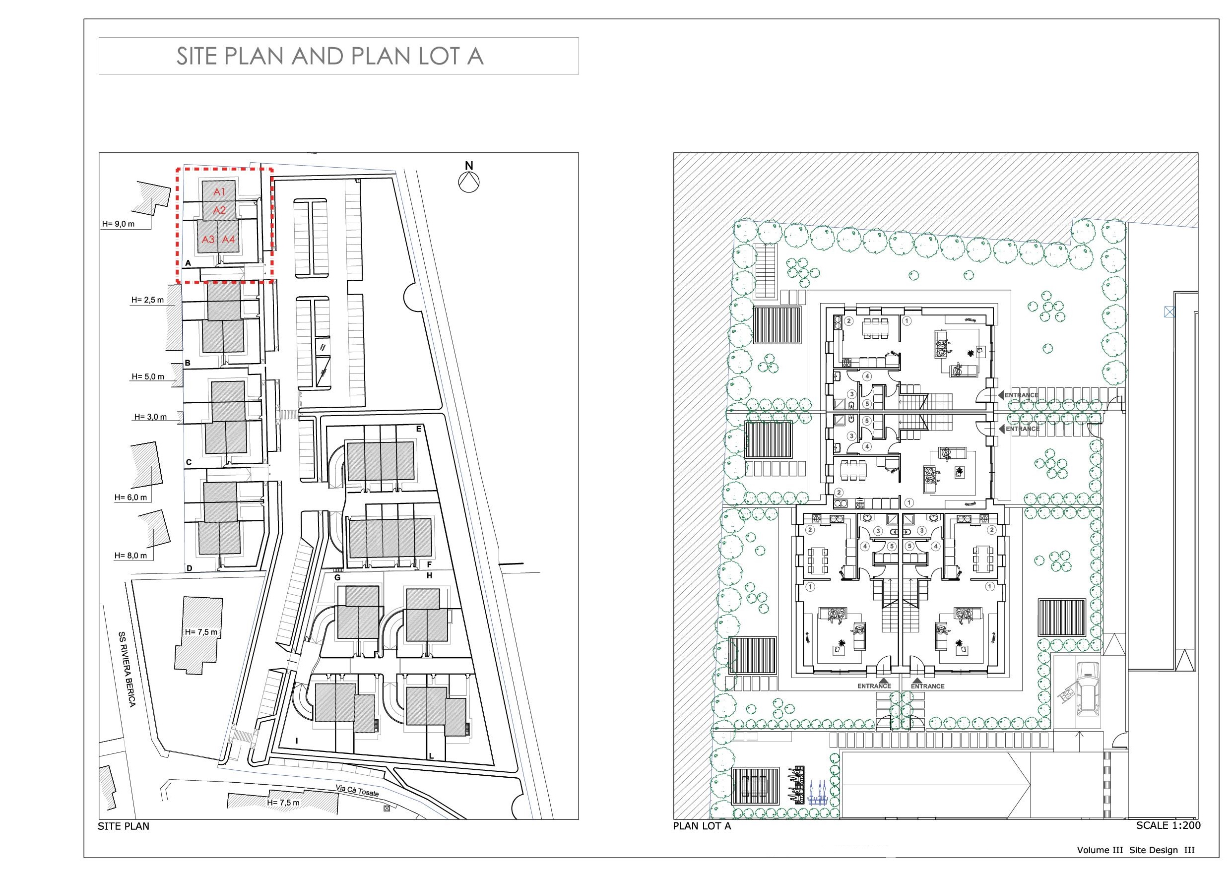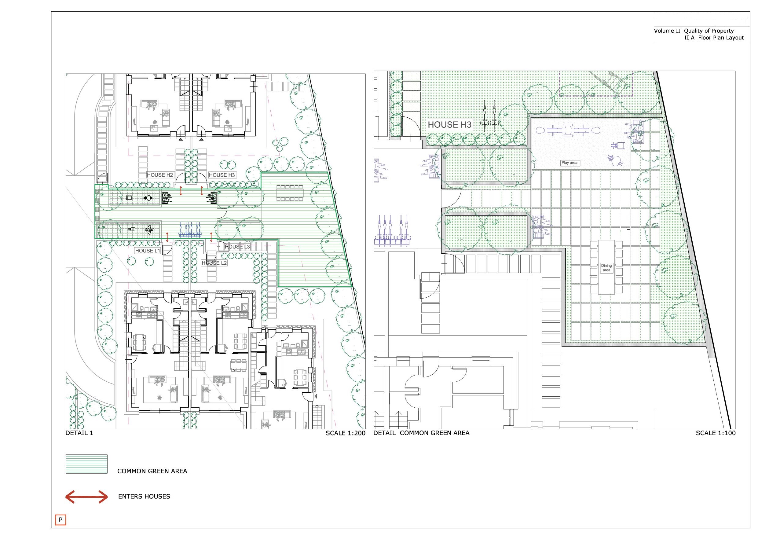 Progetto preliminare di concorso per area PAC 1 a Campedello, Vicenza. Complesso residenziale diviso in comparti che si distingue per le aree verdi interne ai vari nuclei residenziali, strutturati con zone comuni per il relax e con servizi collettivi per cucinare e mangiare insieme e per vivere attivamente gli spazi comuni.