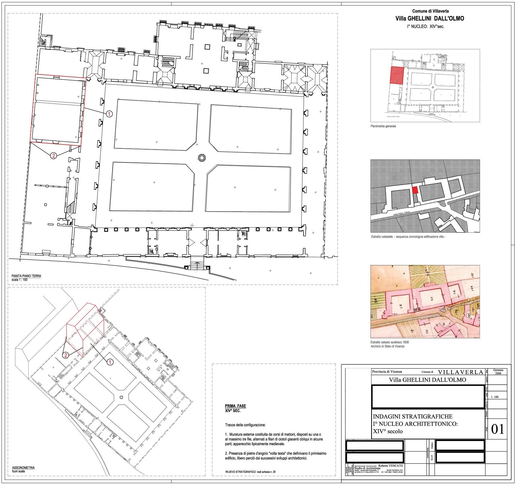 Ricerca storico artistica. Ricerca storico artistica finalizzata a tracciare la cronologia architettonica della Villa dalle sue origini e fino alla condizione attuale, attraverso le documentate trasformazioni intercorse nel tempo; unitamente a questo studio è stata fatta la ricerca storico morfologica tesa ad individuare i caratteri tipologici, le forometrie, le sagome gli impianti planimetrici al fine di relazionare l'edificio e comprenderne l'evoluzione coerentemente con quanto emerso dalla ricerca storico artistica.