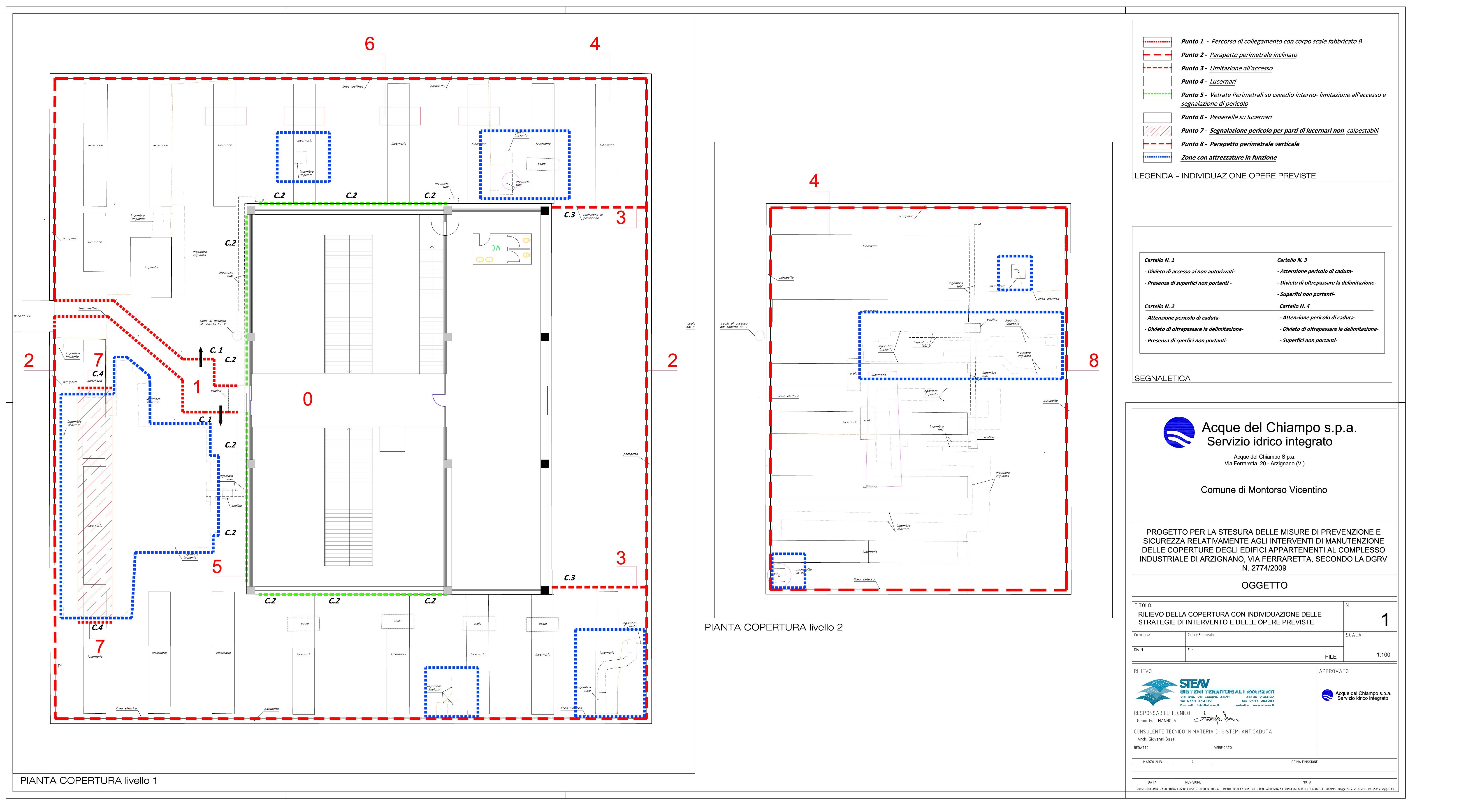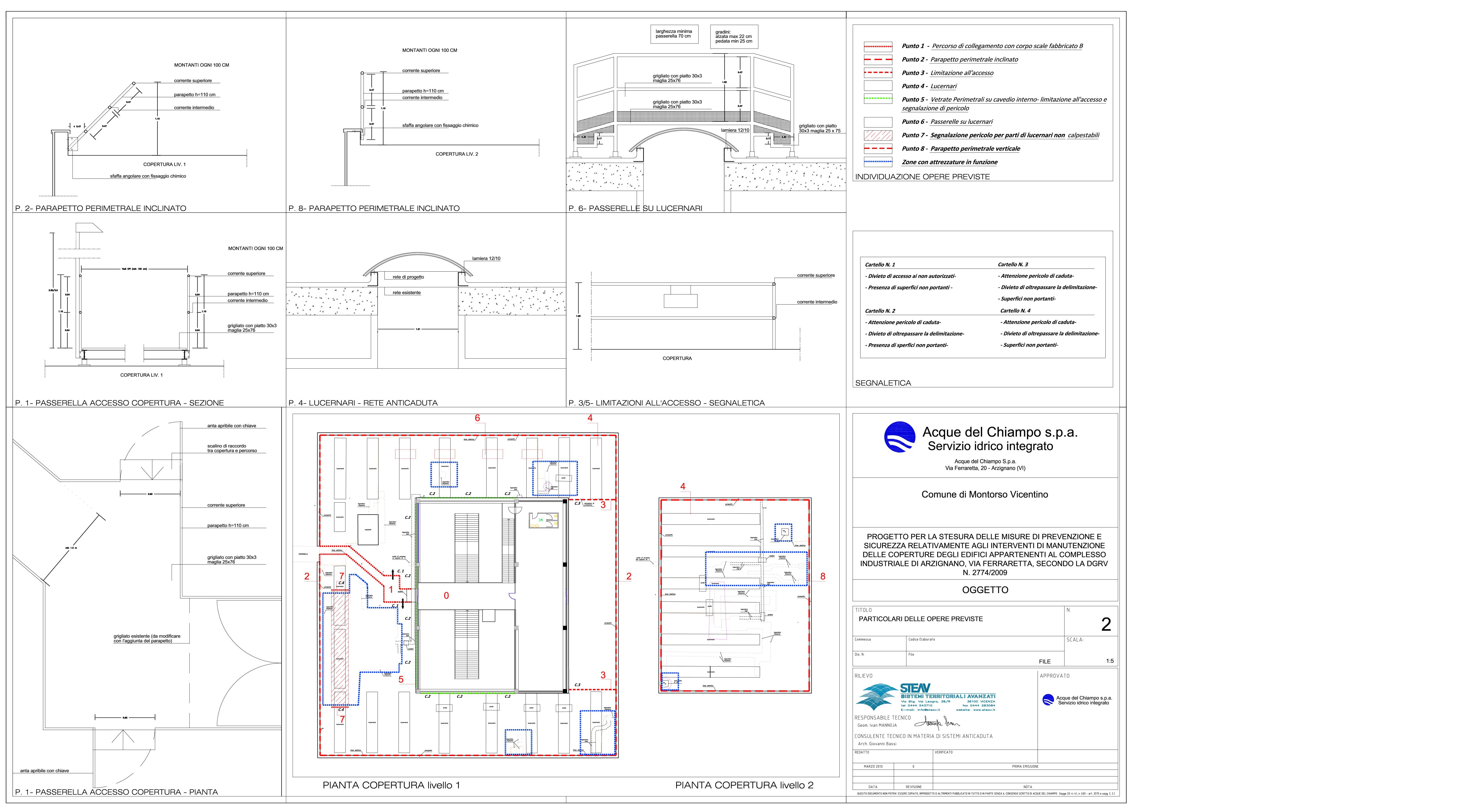 Progetto e realizzazione sistemi anticaduta - linee vita, Comune di Arzignano, Vicenza, 2012.