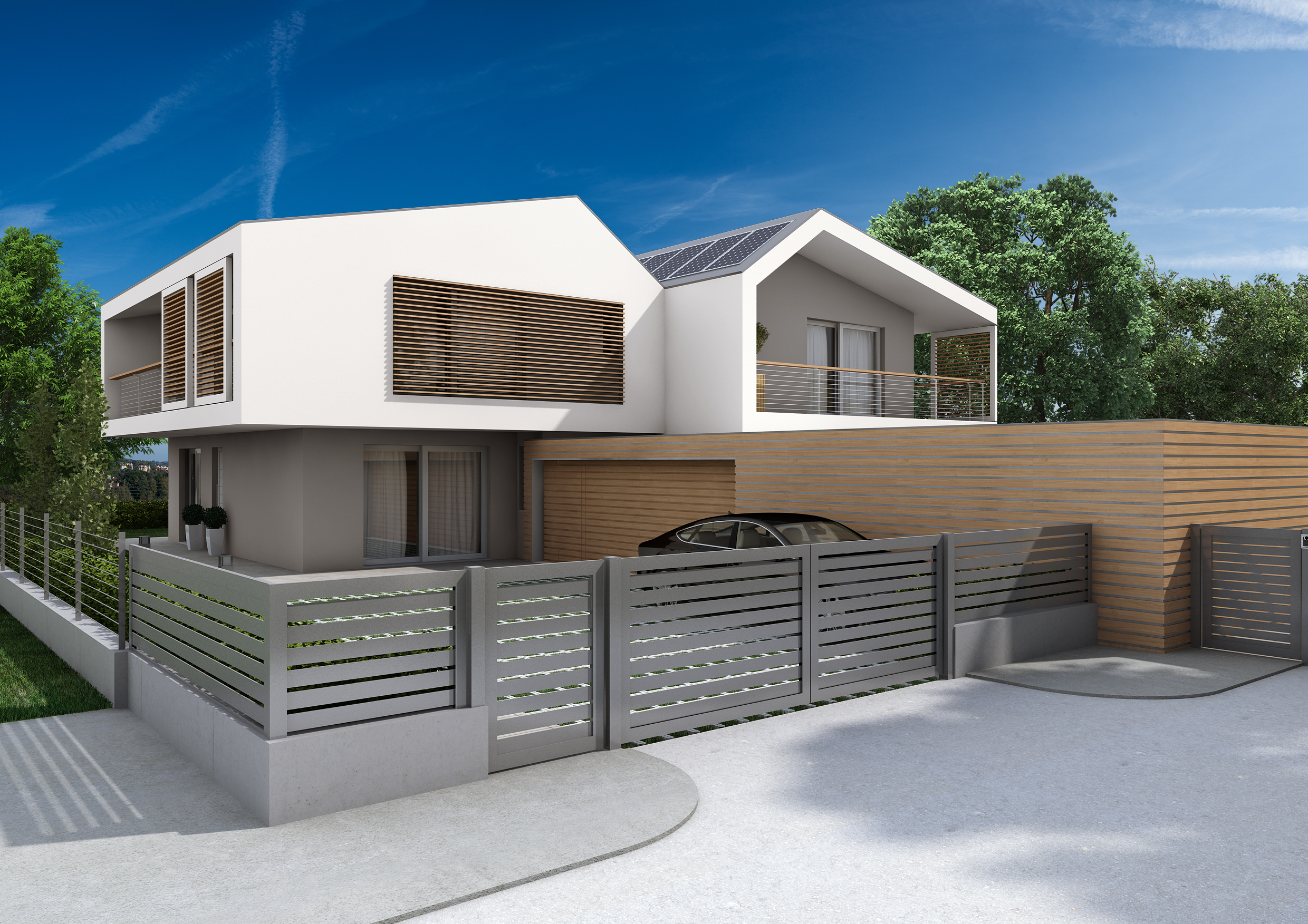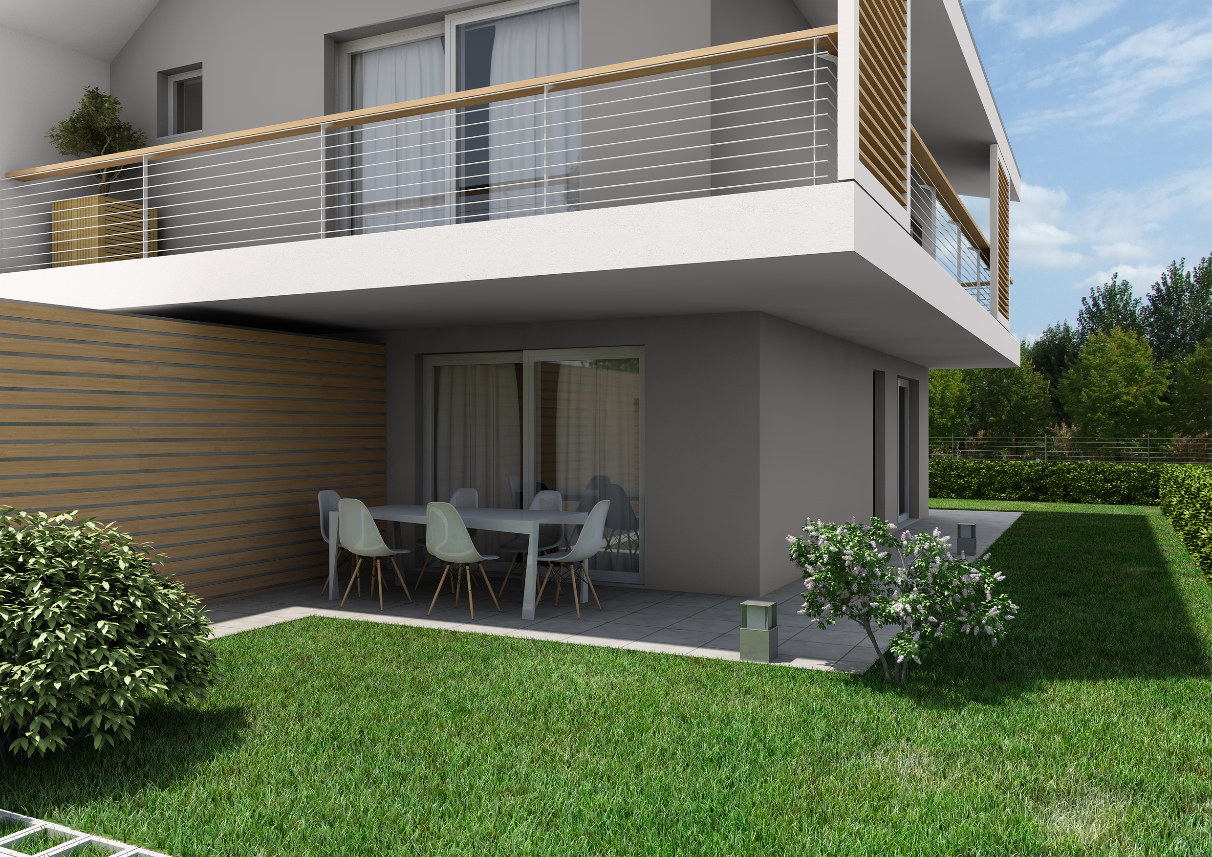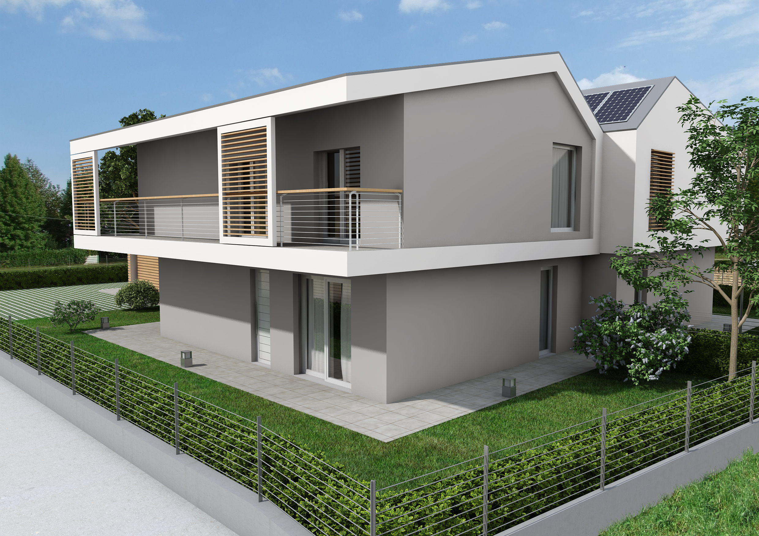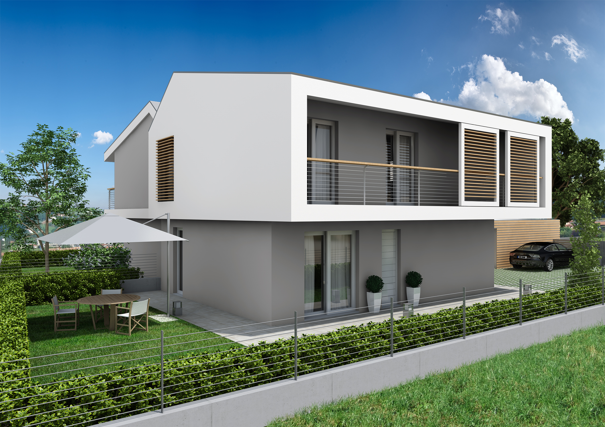 L'area di progetto riguarda parte di una più ampia zona residenziale immersa nel verde ai piedi dei colli di Monteviale, in località Bagnara; il progetto prevede l'inserimento nel lotto di una bifamiliare con autorimessa posta al piano terra e un ampio giardino di proprietà a valorizzare soprattutto gli spazi di relazione del piano terra e il piano primo, con completa indipendenza tra le unità ed a difesa della privacy dei residenti.